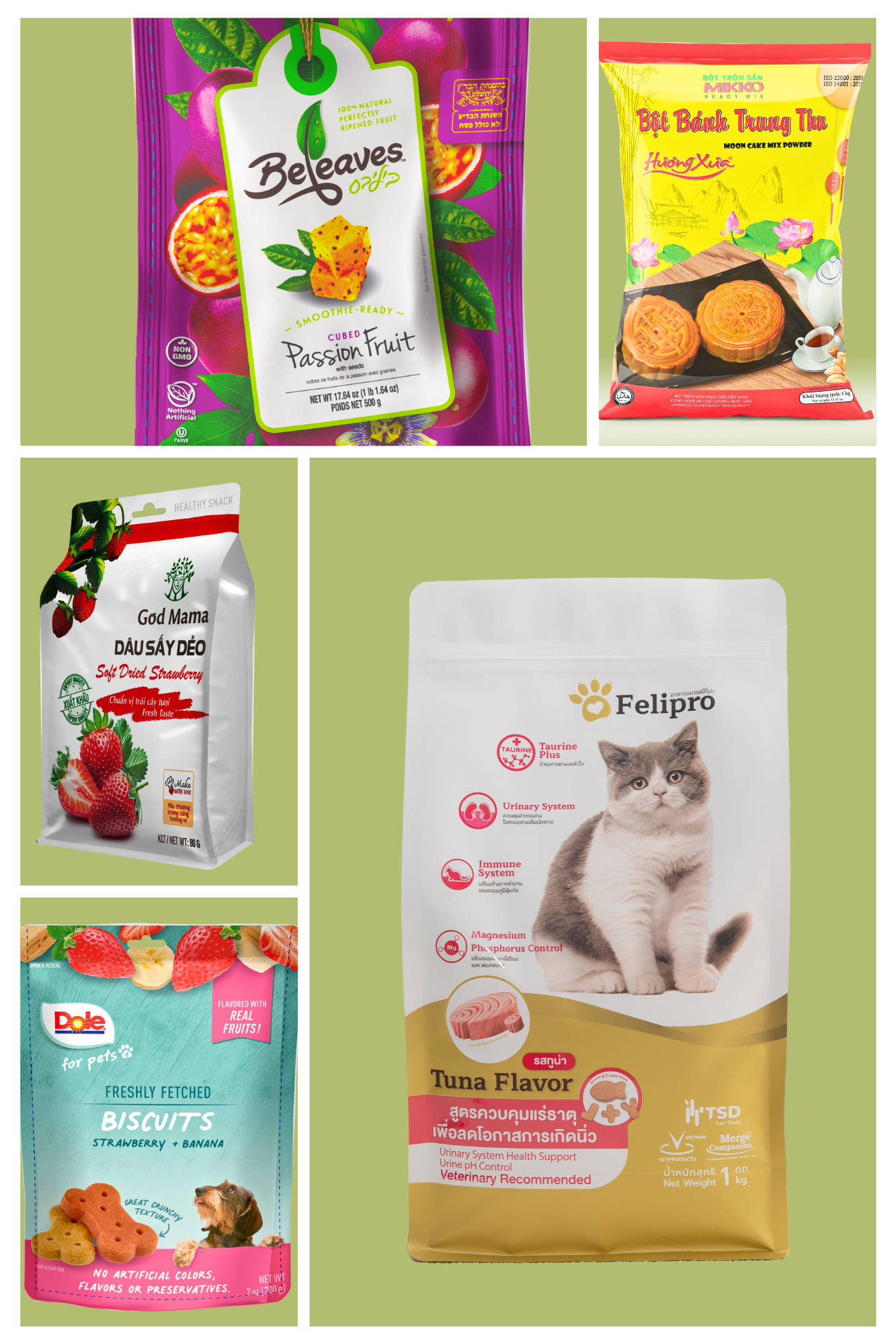 Custom-shaped pouches add a unique design to your packaging, making your product stand out with innovative shapes that reflect your brand identity.